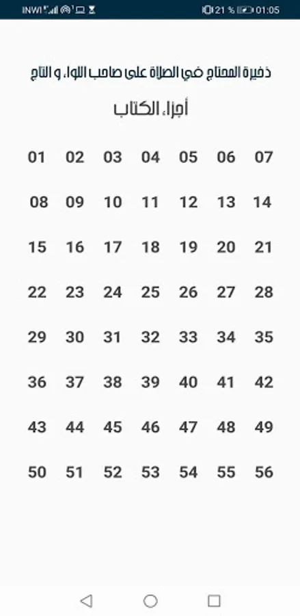 The Book of the Religion of the Needy in Prayer for the Owner of the Brigade and the Crown by His Eminence Sheikh Sidi Muhammad al-Mu'ti Ibn Saleh al-Sharqi al-Maghribi, may God be pleased with him, contains 56 volumes of the greatest of what was classified in merits and prayers and peace be upon the best of the people, our master Muhammad, may God bless him and grant him peace, whom we ask God is the Most Generous, that we have his intercession on the day that neither money nor sons benefit from God who comes with a sound heart.