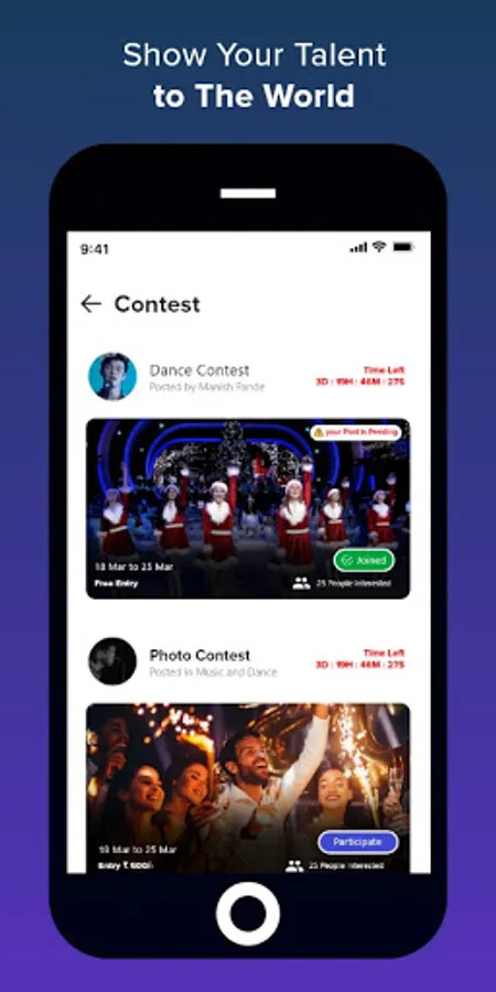 Everyone has been gifted by some Talent but most of them are not able to bring forward their special arts, skills in front of the world because of many reasons. Some either hesitate or get nervous and there are many Talented people who are not able to explore since they do not know how to do. Unfortunately many of them are unable to reveal themselves due to financial problems. ShowTalent is an online platform where World will be your stage and you can shine like a SuperStar. You can participate in many Contests and you can also organize Contests. Create your Groups and run Contest within your Groups or participate in Contests which are open to All.