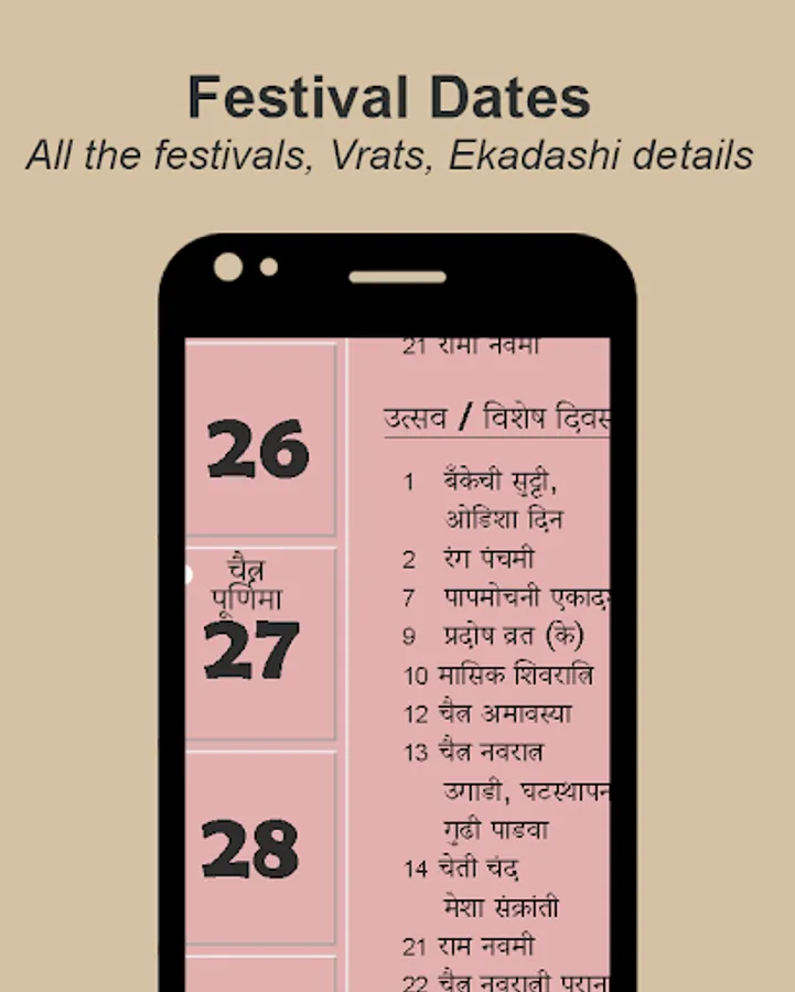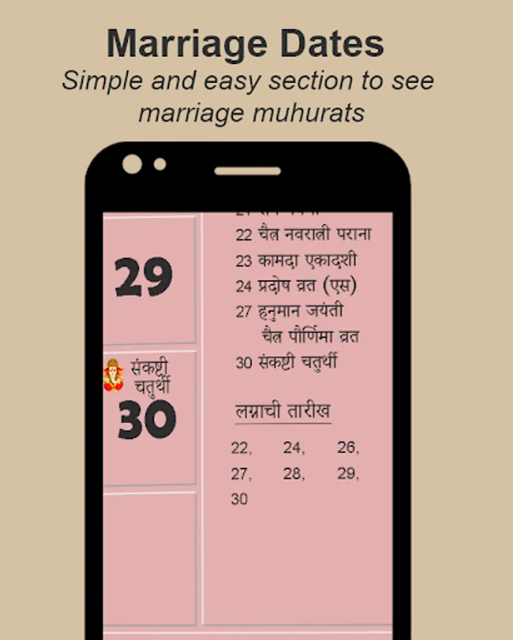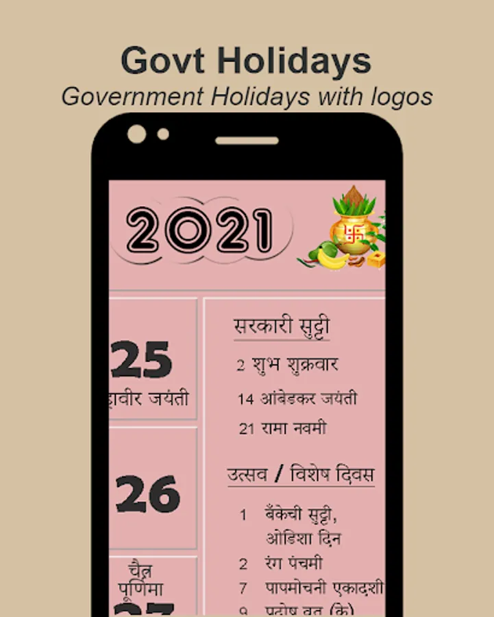 Marathi Calendar 2023 मराठी कॅलेंडर works offline and online and it if free to use. Marathi calendar apps is highly useful to know Shubh Muhurat & marathi panchang 2023 information. 2023 मराठी कॅलेंडर is offline calendar marathi and contents of the app are in Marathi language. Free calendar almanac app for people from Maharastra (Also known as maharashtra calendar 2023).