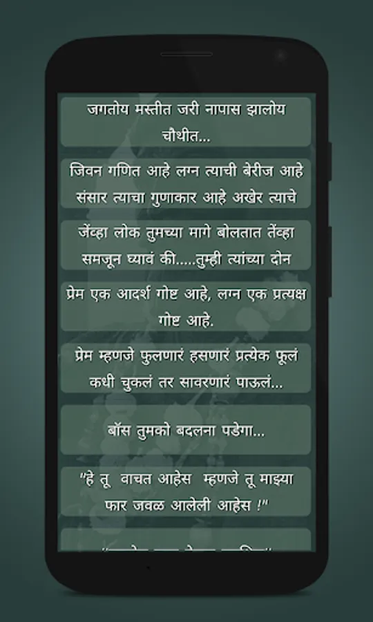 This app contains Marathi Language Status Messages for Social Media Apps.