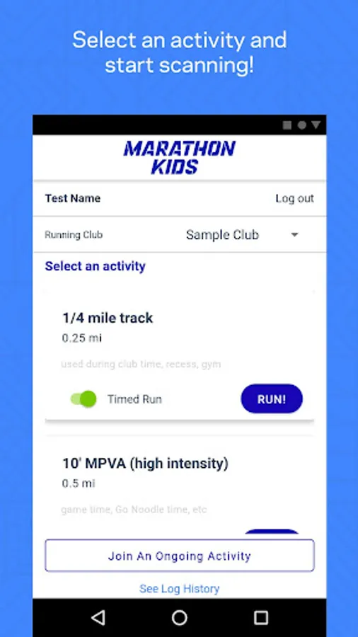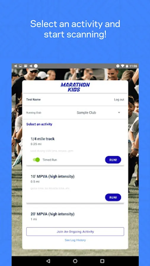 The Marathon Kids Connect mobile app is a companion scanning tool for your Marathon Kids running program. You must first have a Marathon Kids account to access your specific tracks and activities, or, you can join another club's live session as a guest scanner. Please note that this app is NOT intended as an activity tracker for parents of Marathon Kids. Parents, please login to app.marathonkids.org to access your account and log miles.