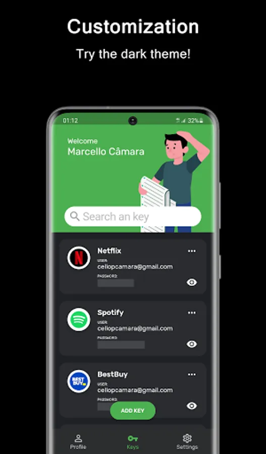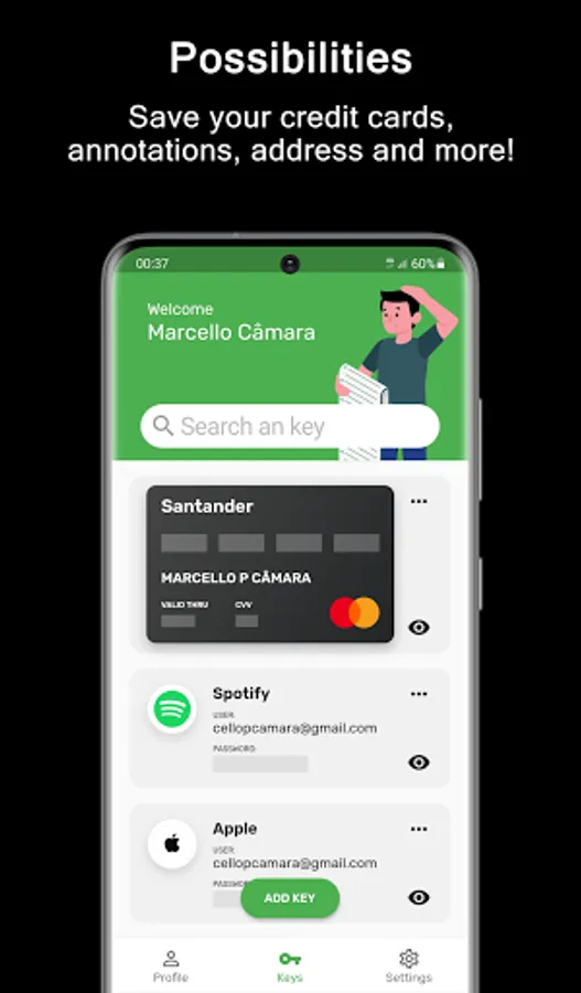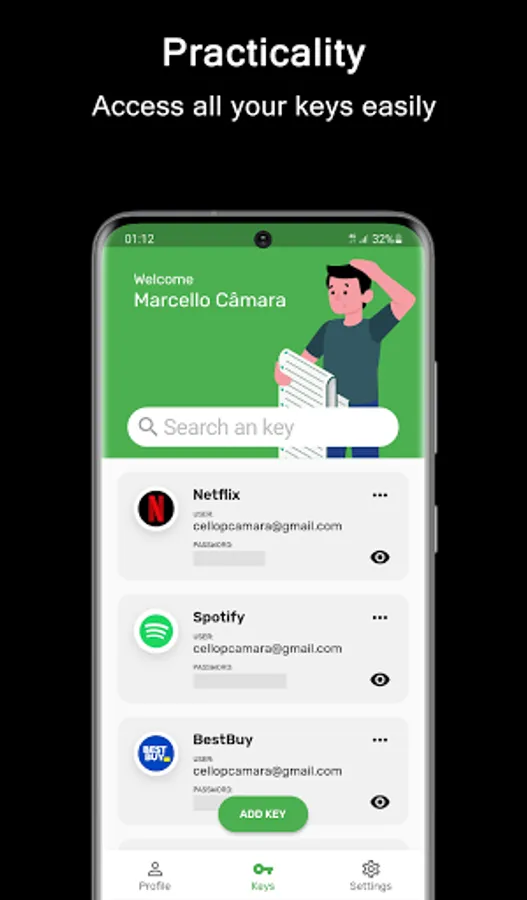 With KeyZ - Password Manager, unlock a world where your account passwords are literally at your fingertips! Visualize effortlessly breezing into Spotify at your friend's epic bash, password block? Not a chance. Simply access KeyZ, authenticate yourself, and voilà, your password dances before you, ready to join the party fervor!