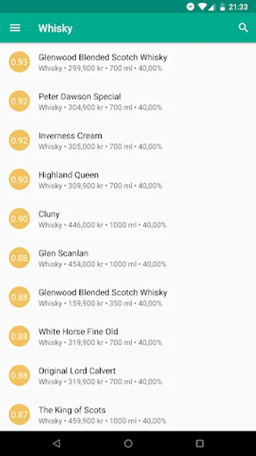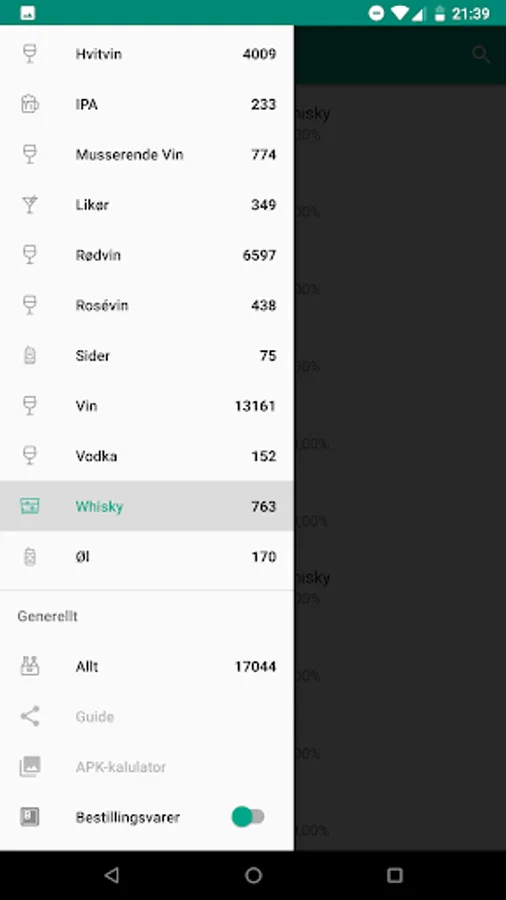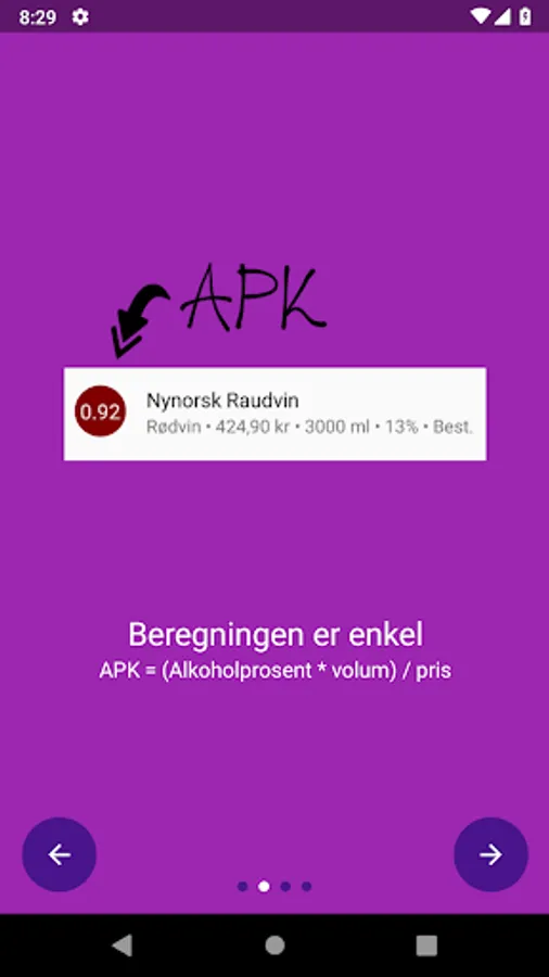 • Calculates and lists Vinmonopolet's offer based on APK, Alcohol Per Krone.