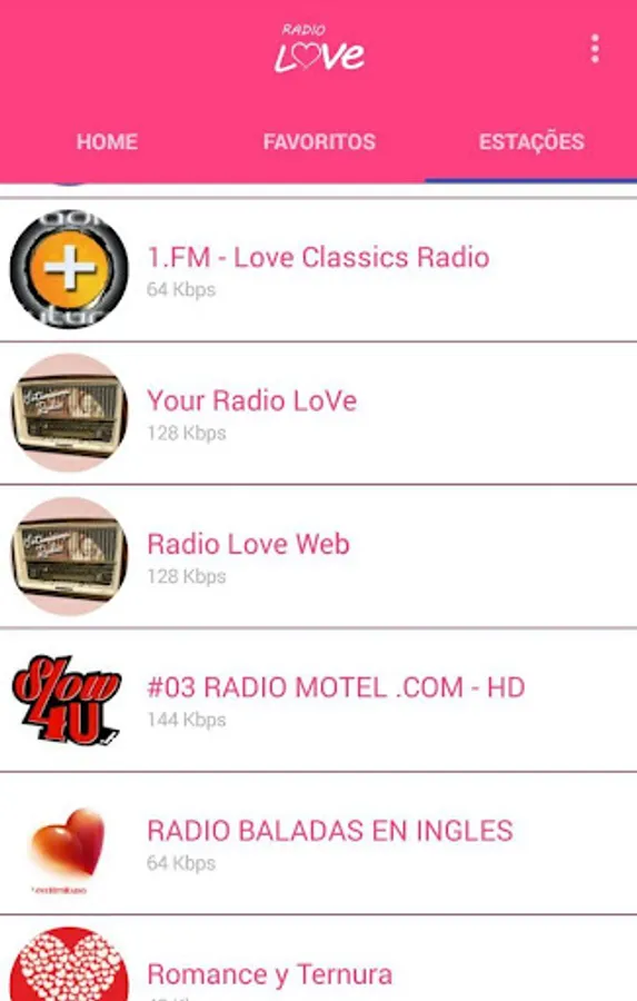 The Love Radio app brings together the best international online romantic music radio stations in the world in an interface easy to understand and handle the Portuguese language in Brazil.