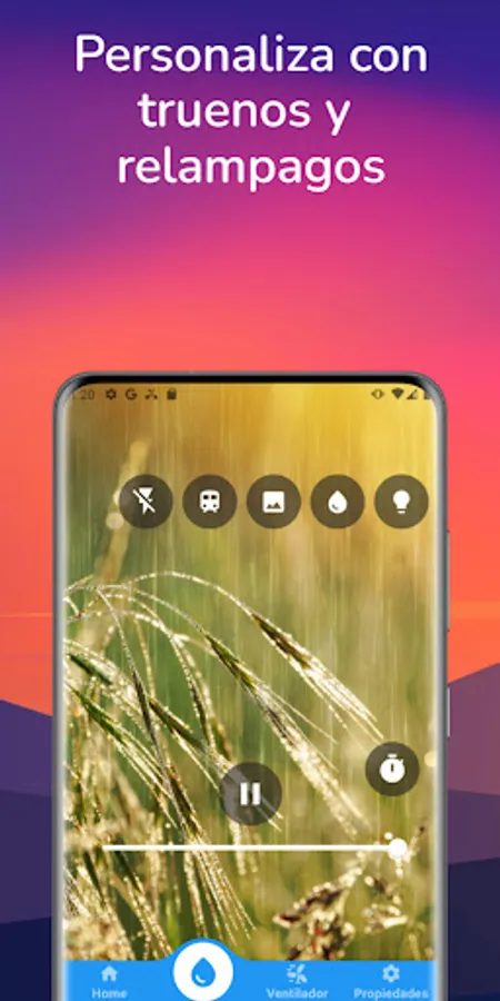 Our app has a variety of features that can be customized for your sleeping environment, such as rain noises of different intensities, combined with thunder and lightning or sounds of a passing train,
