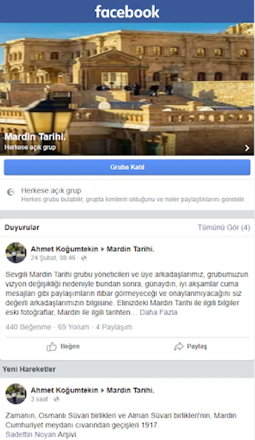 History of Mardin, founded by Ahmet KOĞUMTEKİN, found in the social media. Group's Site Application