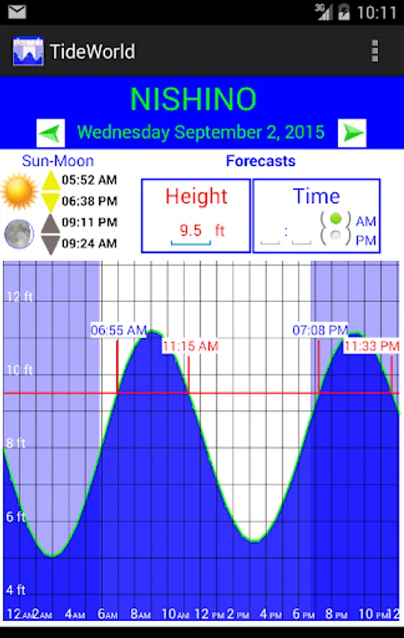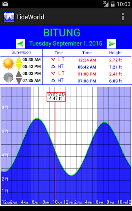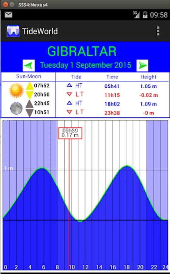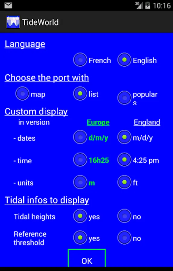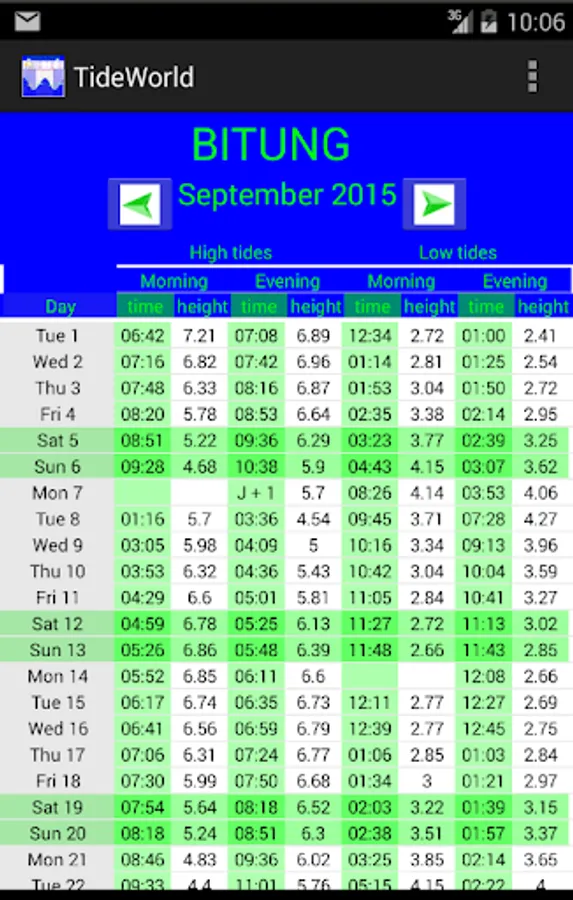 The menu is used to calculate the tides and to give specifics on a day or month.
