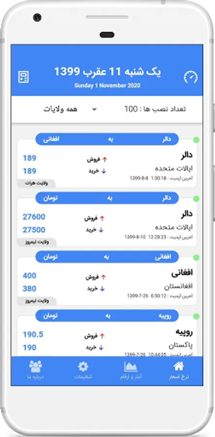 MargoRate application has been designed and launched in order to provide the latest exchange rates in Nimroz province market. In the first phase, this application informs everyone about the current exchange rate against the Afghani and is updated several times a day.