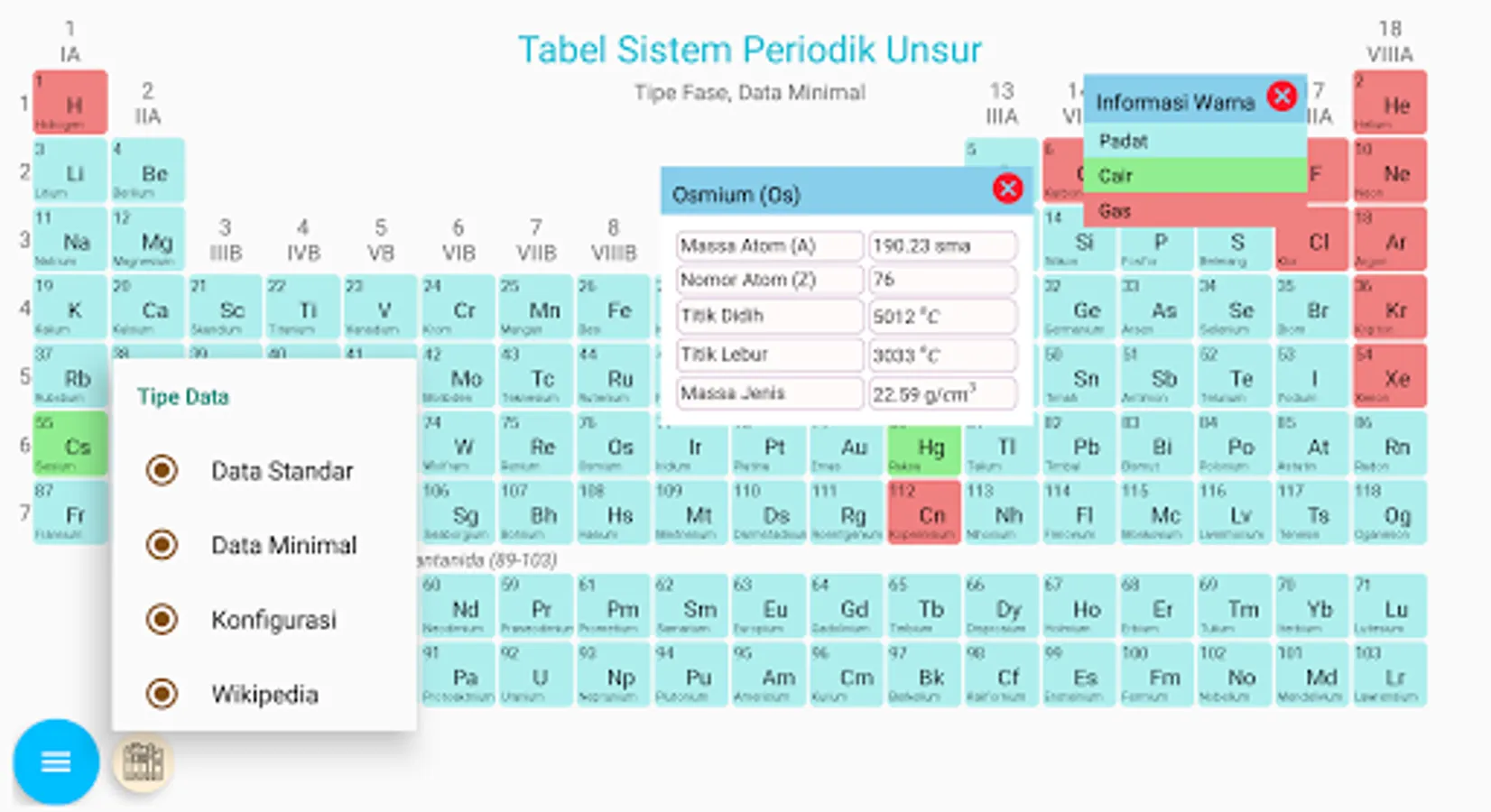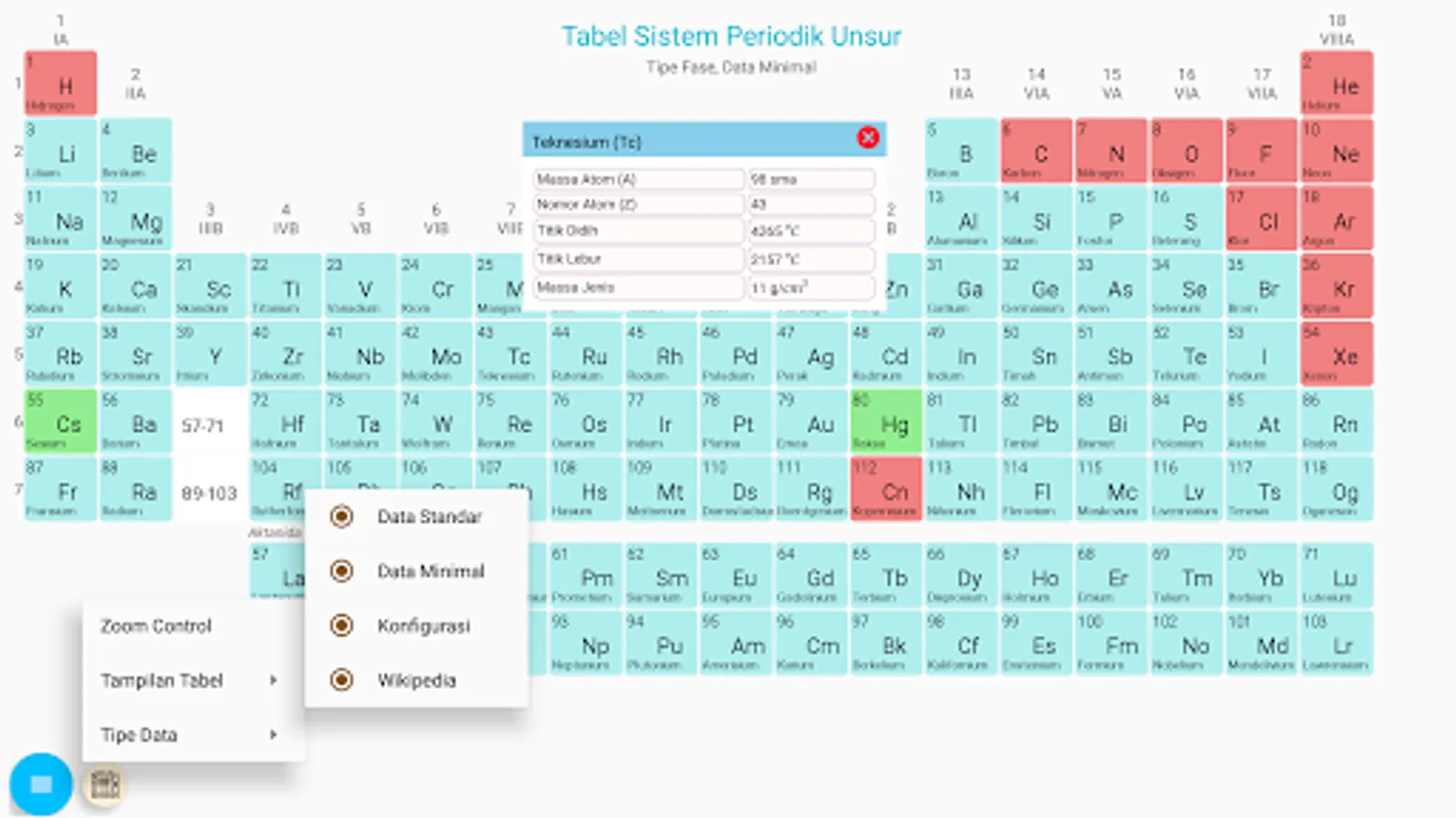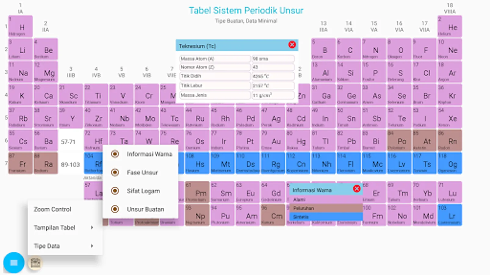 The Periodic Elements System (SPU) table displays the data for each element as easily as possible with animated orbital diagrams, electron configurations and atomic models. The periodic table display separately displays the classification of elements based on phases, metal properties and formation of elements. This periodic table and chemicals are intended for educational activities.
