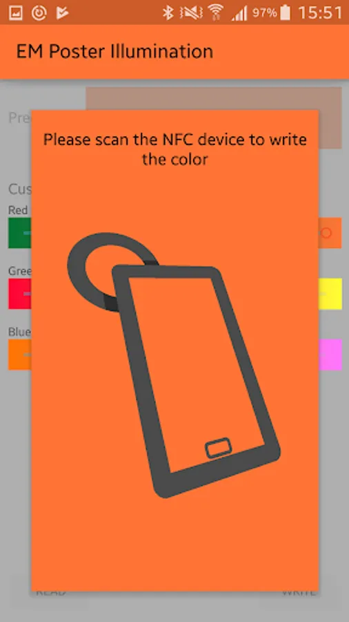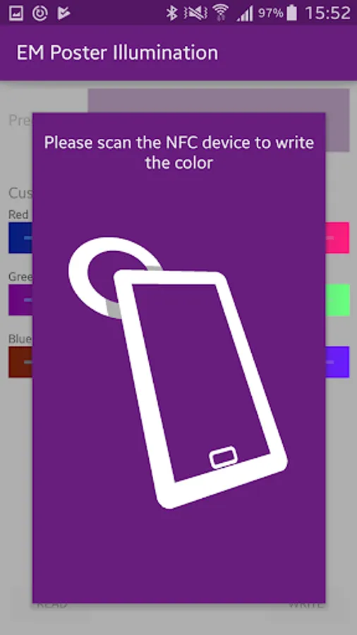 - Move mobile phone NFC antenna close to NF4 antenna and wait until write confirmation pops-up