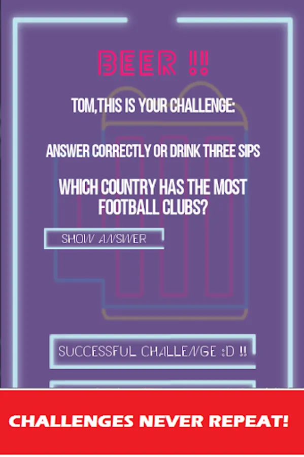 - e-Drinkz! Drinking Game CHANGES the challenges everytime yo play! always a DIFFERENT experience!