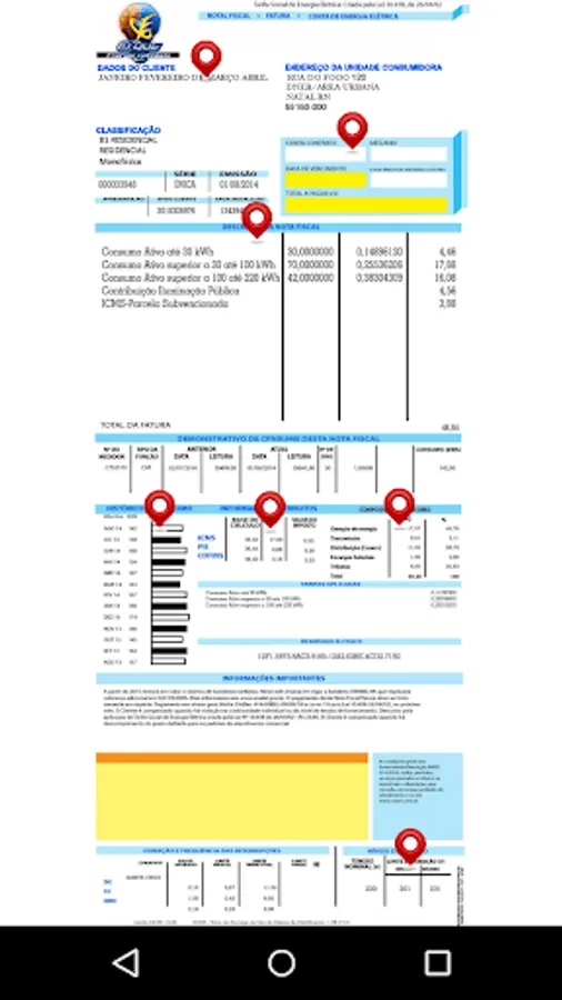 The application has three areas for user manipulation. In the first, we know the home screen soft described in section 1. In the section 2, we know the screen where we know our electric bill. Finally, in section 3, it is provided a quiz with questions about physical / electricity.