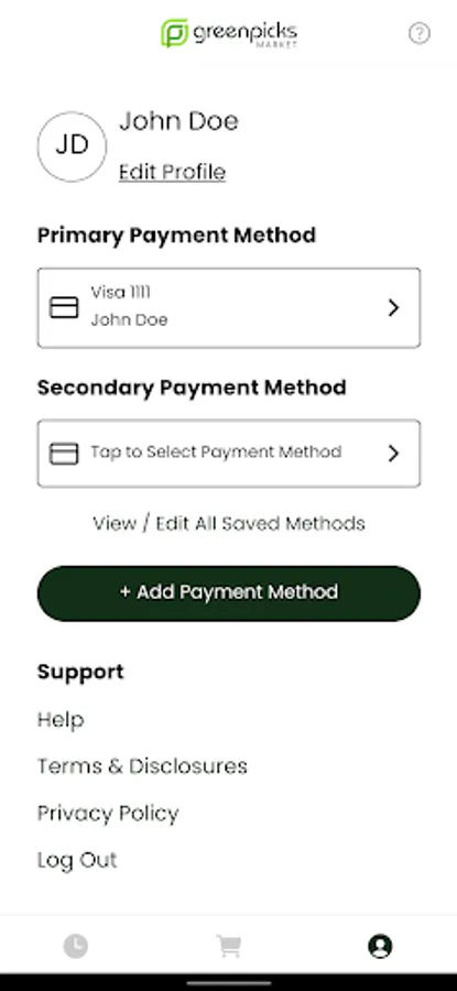 Download the app to access the store, manage your payment method, check your order history, and submit help requests.