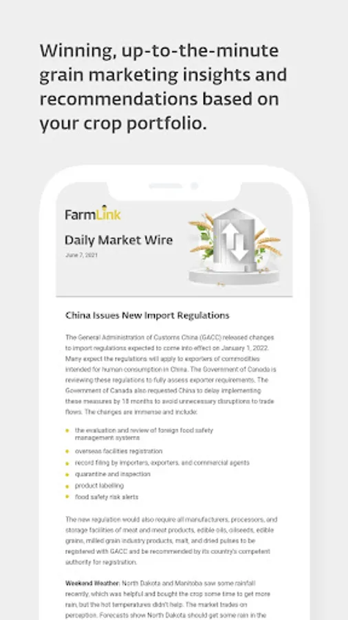 • Access to FarmLink's team: market analysts, grain marketing advisors, customer success representatives