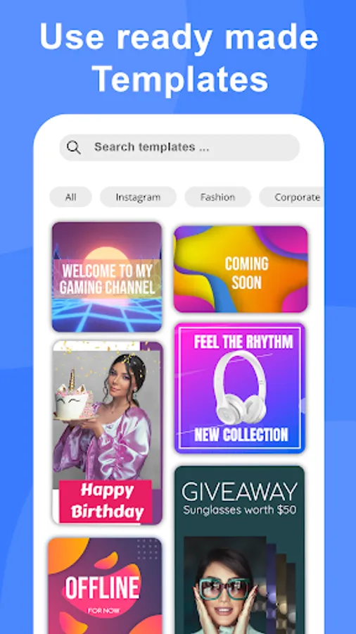Video creating is very simple with this social media video maker. Create short videos, engaging instagram story, post, reels to increase the followers and whatsapp status with branding.