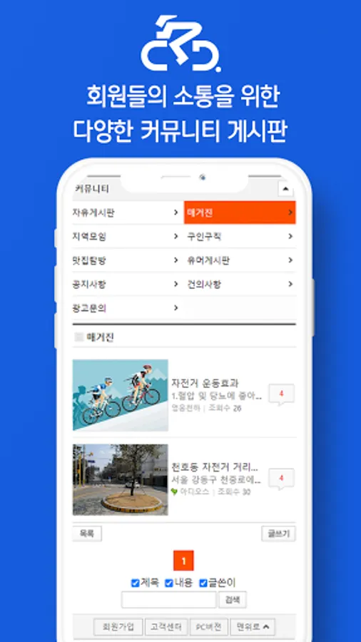 -Free bulletin board All information services of bicycles such as local gatherings, gourmet tours, magazines, job search, humor boards, etc. are provided.