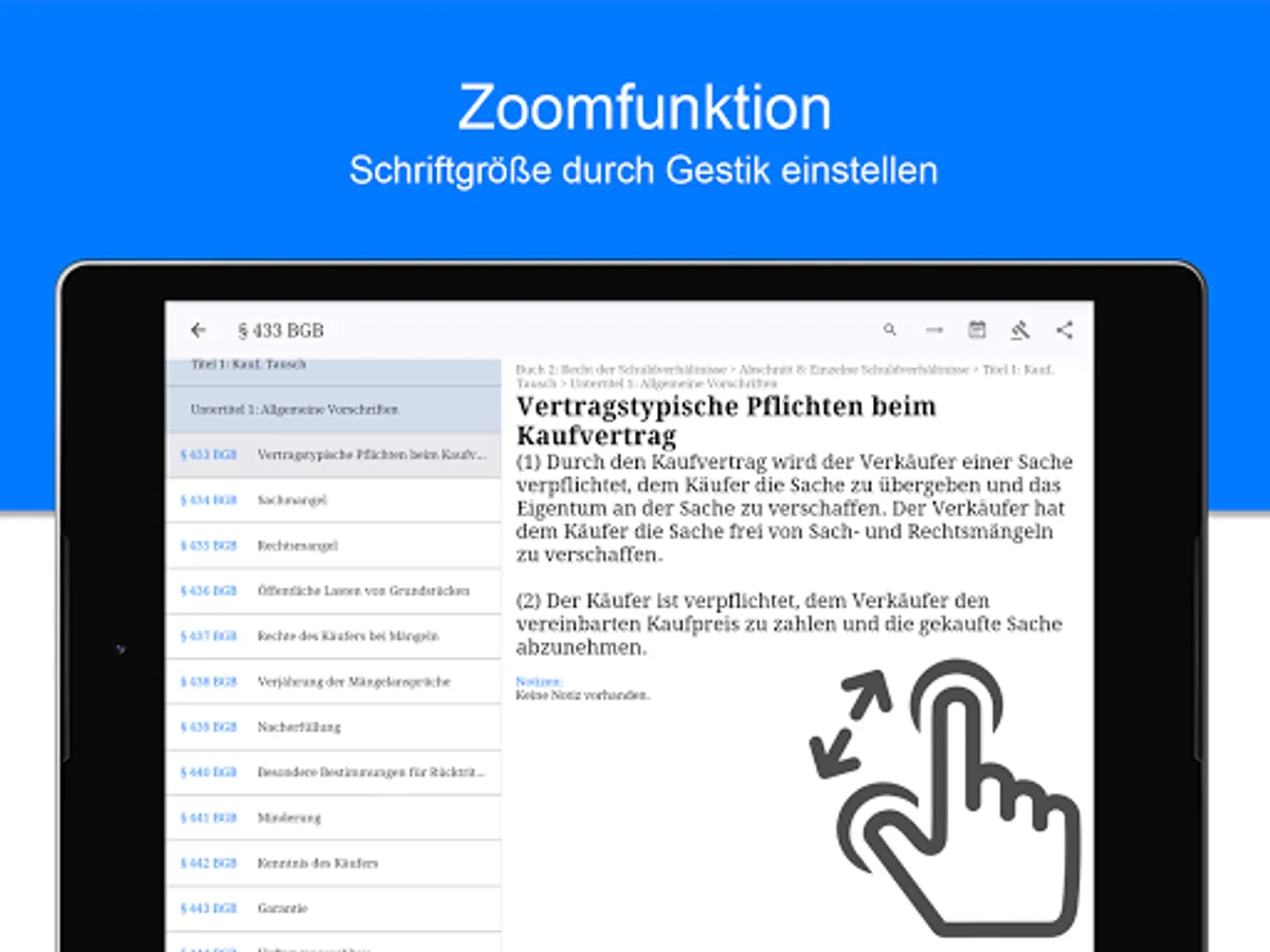 - The font size is adjustable with two fingers (Zoom).