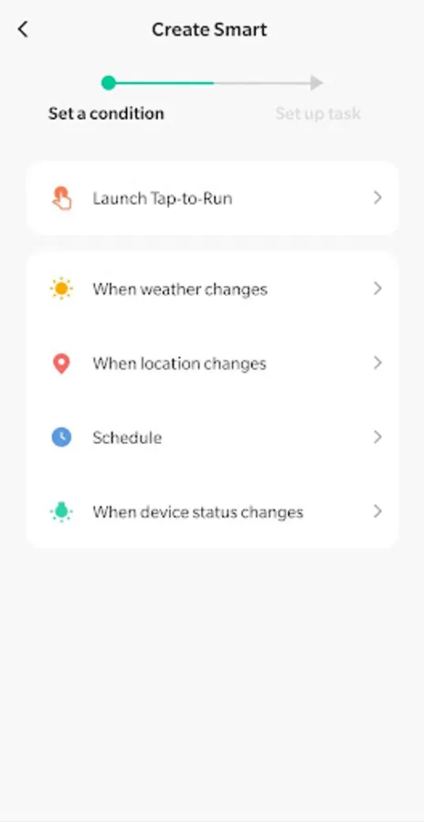 • Devices automatically start/stop working based on pre-defined temperature, location and time.