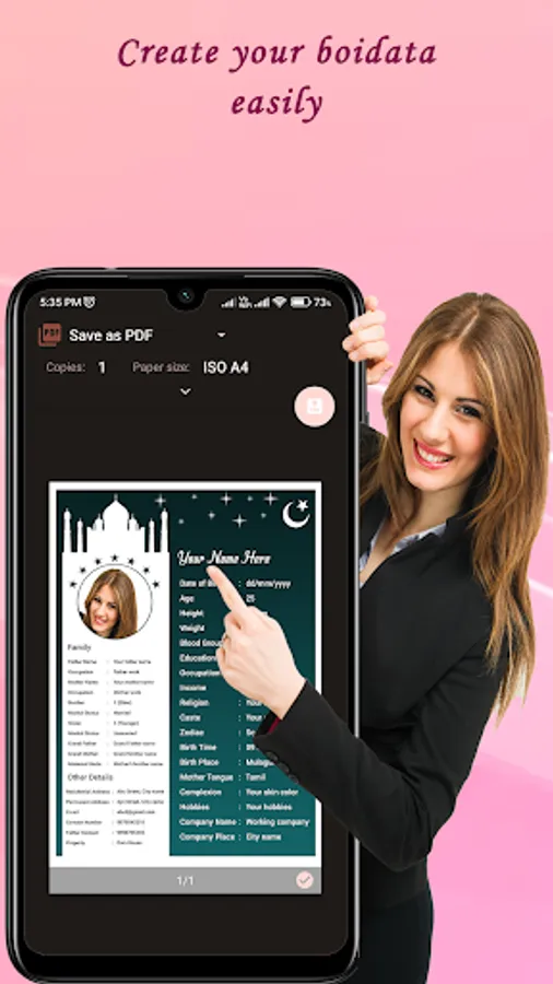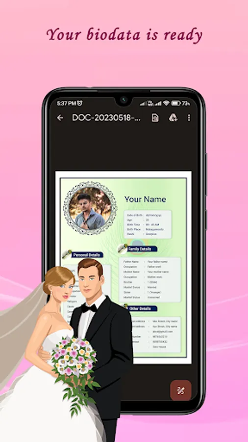 Through this application, you can make your marriage profile bio data for all types of religions and casts. Based on it you can also add the images and other details too. In the phone number field, you can give your parent's mobile number so it should be safe for all no need to verify your OTP. You can use this pdf marriage biodata tool to use all Shaadi proposals. This application is completely fastest and most free Bio data maker app.