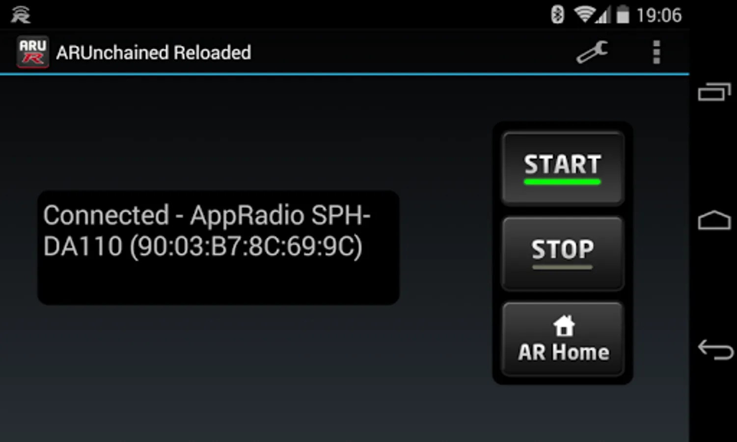 Any other AppRadio related app needs to be uninstalled as this blocks the connection to AppRadio Unchained Reloaded.