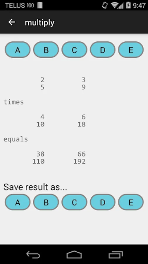 Multiply, add, subtract, multiply by a number, transpose a matrix or matrices. Store the result in a new variable.