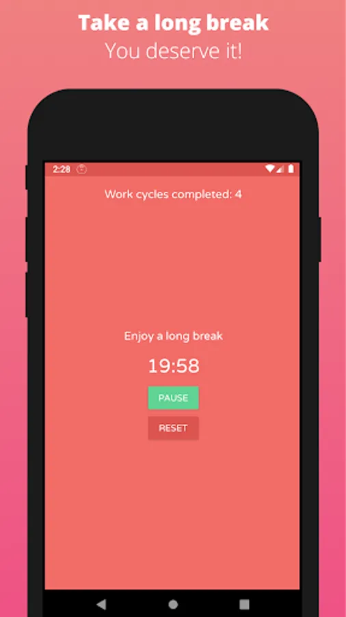 Pomodoro Technique Timer is a free Pomodoro app to help you keep track of your work and break cycles. It will let you know whether to get working or take a break and for how long.
