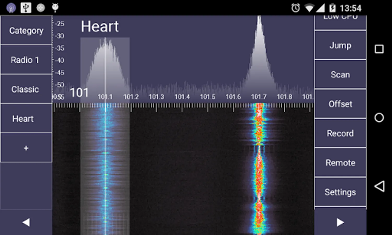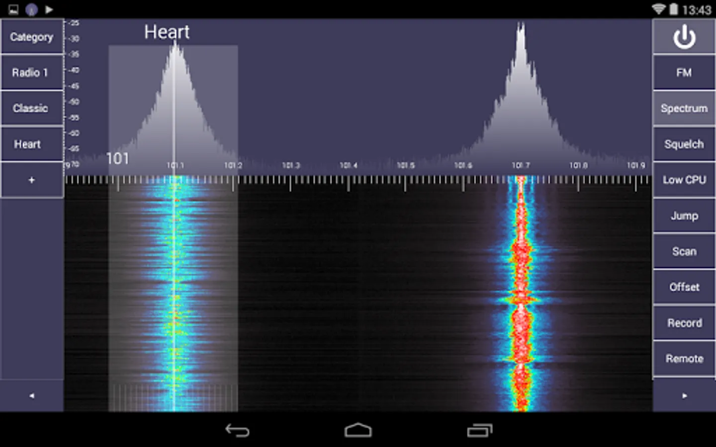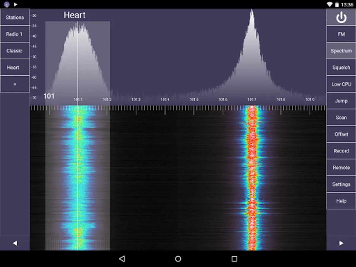 Listen and record live over-the-air FM stereo radio stations with RDS, weather reports, emergency stations, taxi traffic, airplane communications, audio of analogue TV broadcasts, HAM radio amateurs, digital broadcasts and many more! Depending on hardware used, radio frequency coverage can span from 20 MHz to 2.2 GHz. SDR Touch demodulates broadcast FM, AM, narrowband FM, upper sideband (USB) and lower sideband (LSB) signals.