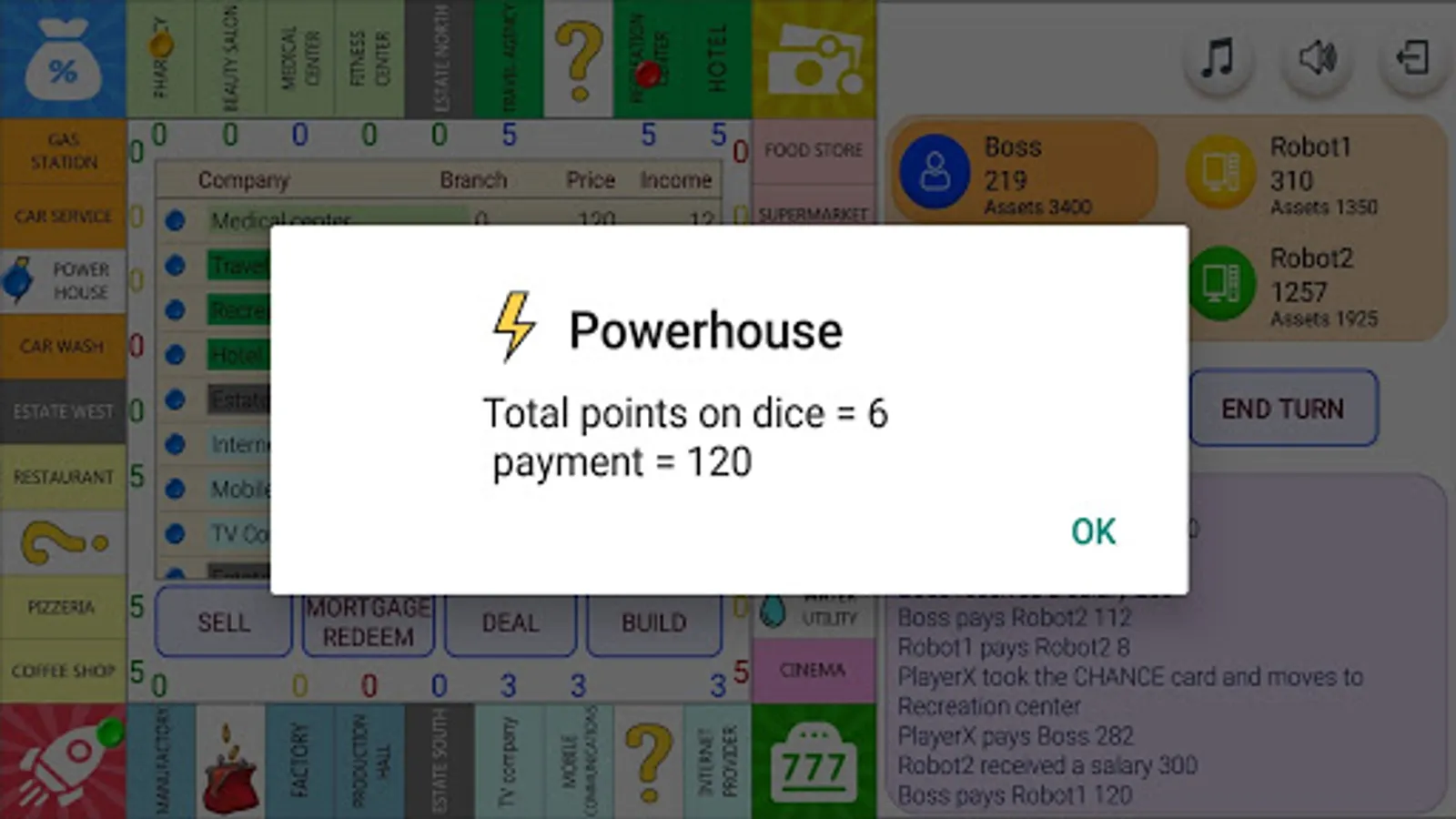 Roll the dice, move your pawn, buy properties, make deals. Create monopolies, build branches and force your opponents to bankruptcy. And most importantly - have fun.