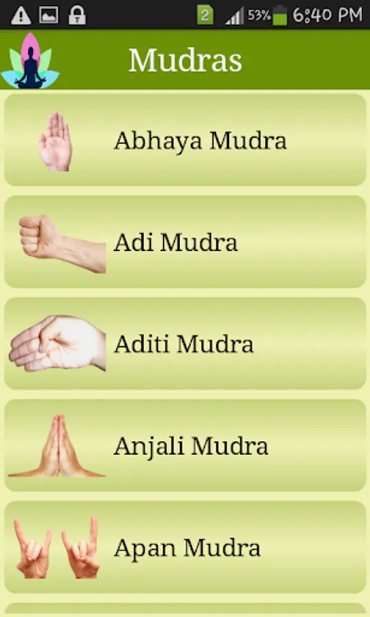 This app introduced all hand mudras with its benifit and how to do it. also provide one image of every hand mudras Posture.