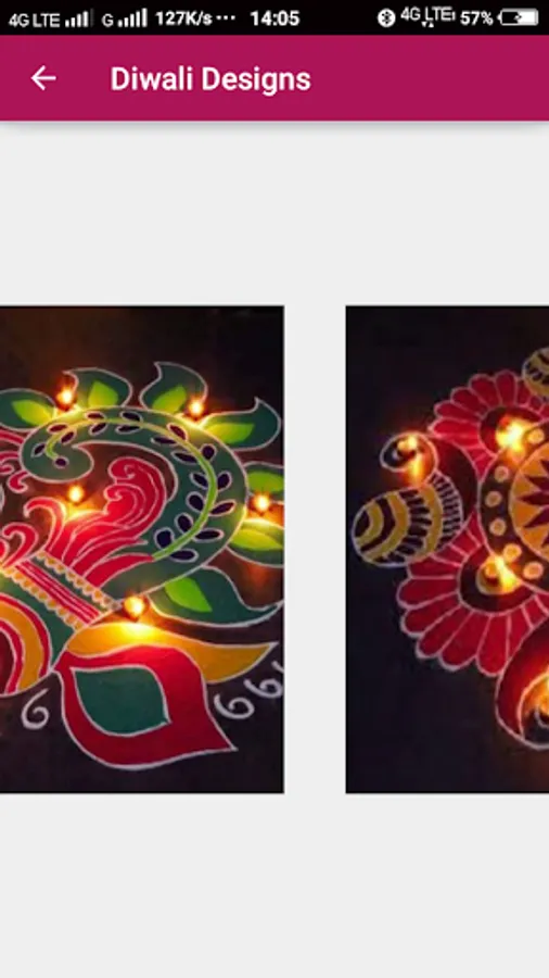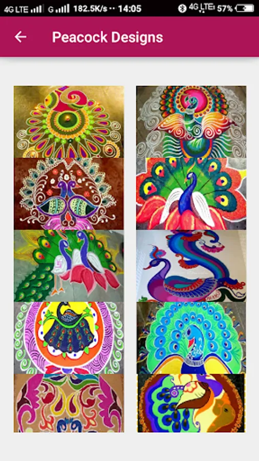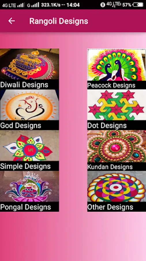This application has rangoli designs for different festivals, dot rangolies god rangoli etc. By seeing the designs you can leran these Rangoli. Rangolis available in gridview and swipe view
