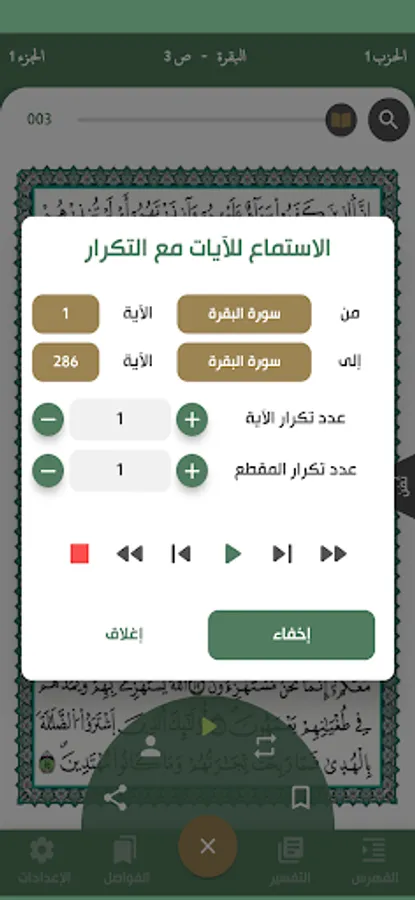 The possibility of using the feature of repeating the surah or repeating the verse to facilitate the memorization process -