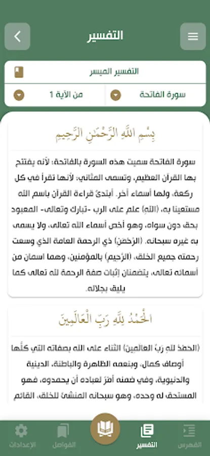Interpretation of the Noble Qur’an interactively with the possibility of choosing more than one interpretation -
