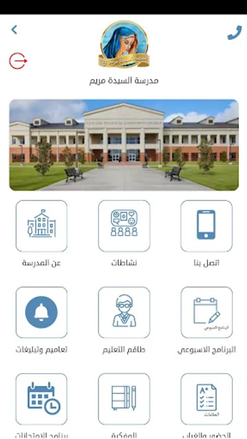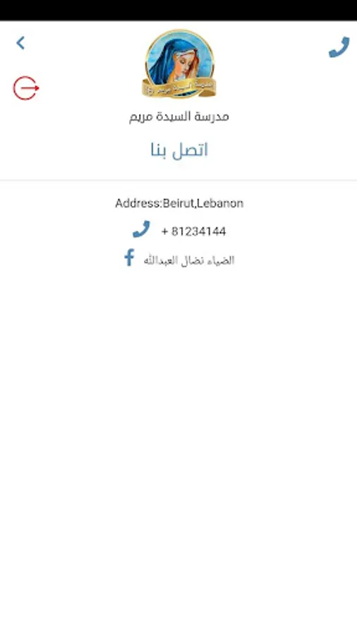 (Contact Us): Shows all the means of communication available with the school from the phone number, email and Facebook account