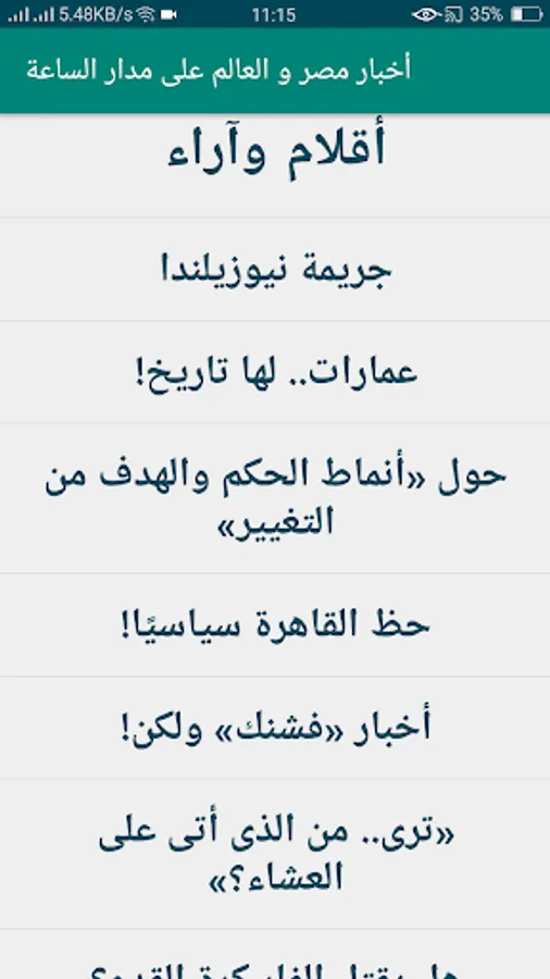 An application that contains dozens of Egyptian, Arab and international news sources updated 24 hours a day through RSS feeds