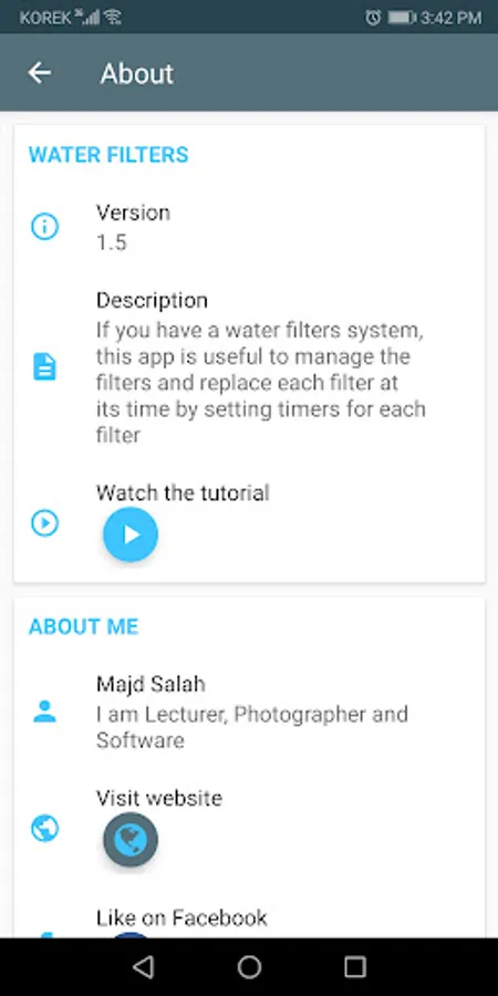 You can create an alarm for each water filter you have and these alarms will run in the background of the app even if the app is not on screen or even if your device is booted, to alarm you in the proper time to change the filter(s).