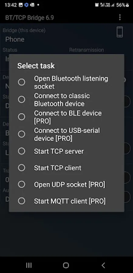 App enables communication between different types of communication technologies (PRO connections are time limited). Smartphone with this app installed acts as a converter device. It connects to remote devices which cannot communicate directly, and it creates communication bridge between them, enabling them to exchange data. Currently supporting: