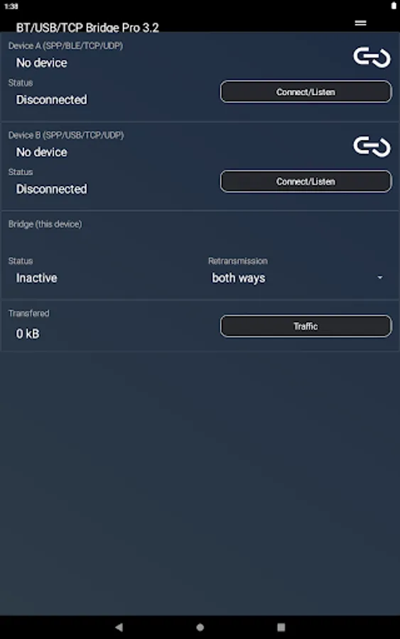 App has in build terminal, you can view traffic in a log and send data to connected devices directly from the app interface.
