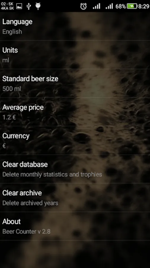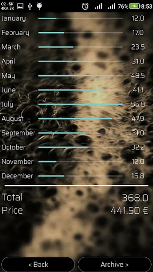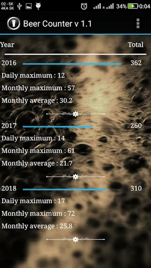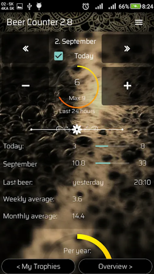 Beer consumption is stored for each individual month and at the end of the year saved and can be viewed in "archive" for that particular year.