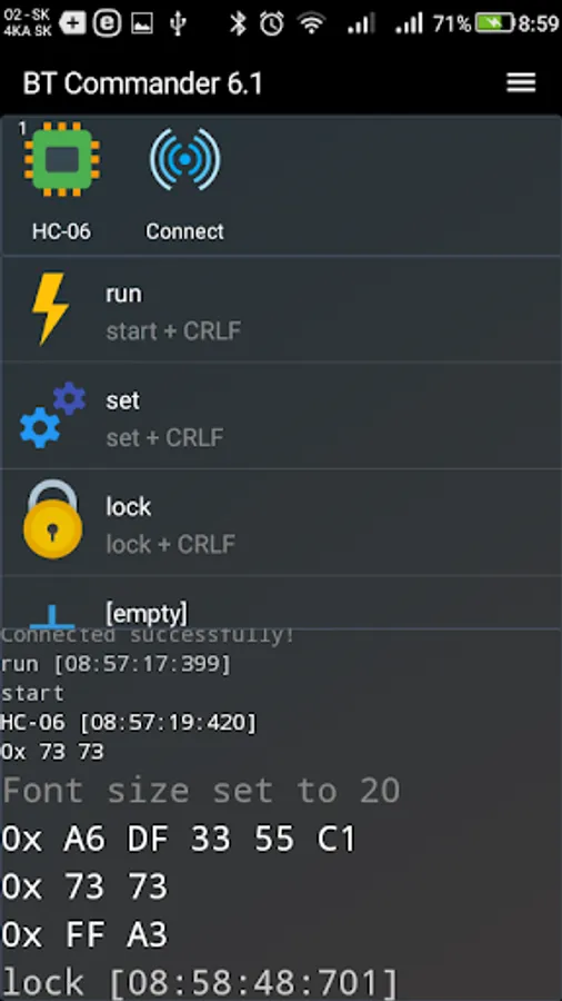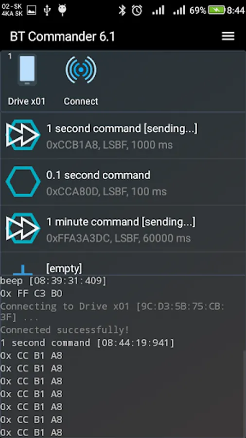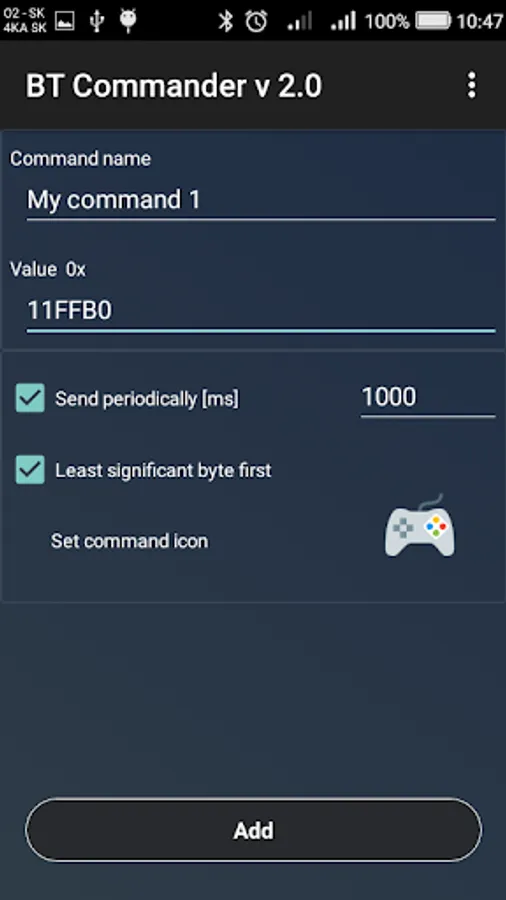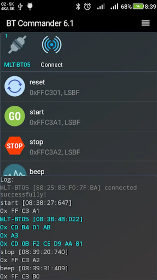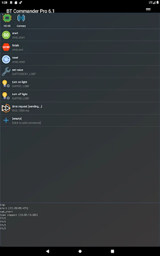 Bluetooth Commander is Bluetooth terminal app for managing low level communication between your Android smartphone and Bluetooth devices such as microcontrollers, arduinos, processor boards or other Bluetooth terminals. Application allows connection to Bluetooth device with traffic diagnostic functions and contains interface for creating database of user defined commands.