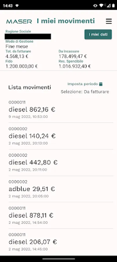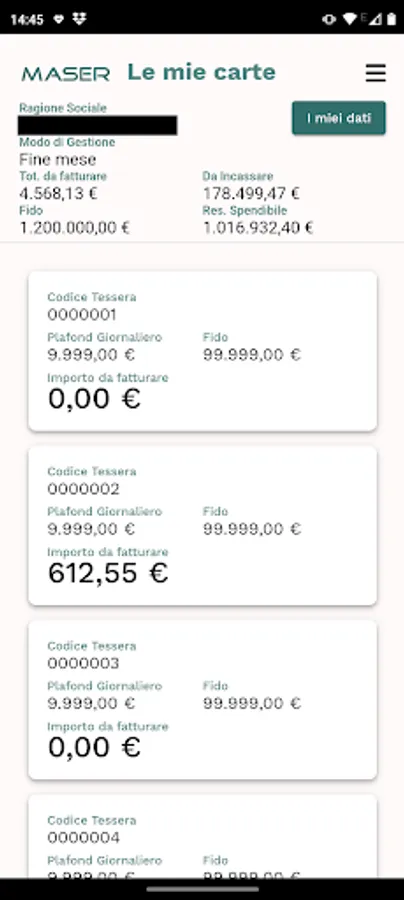 Application of Maser Italia S.r.l. for the management of payment cards and loyalty programs