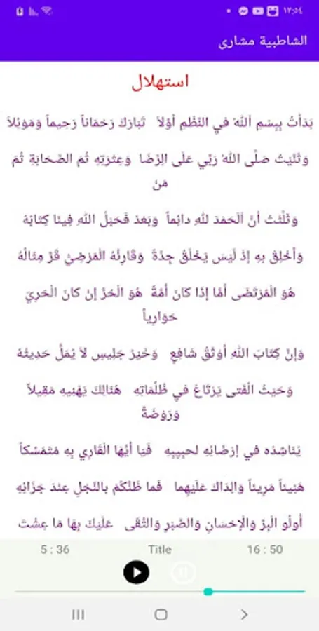 تكرار تلقائى متن الشاطبية مشارى العفاسى بدون إنترنت قراءة وسماع
