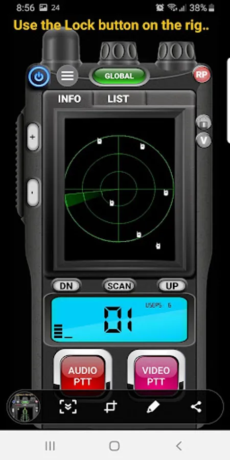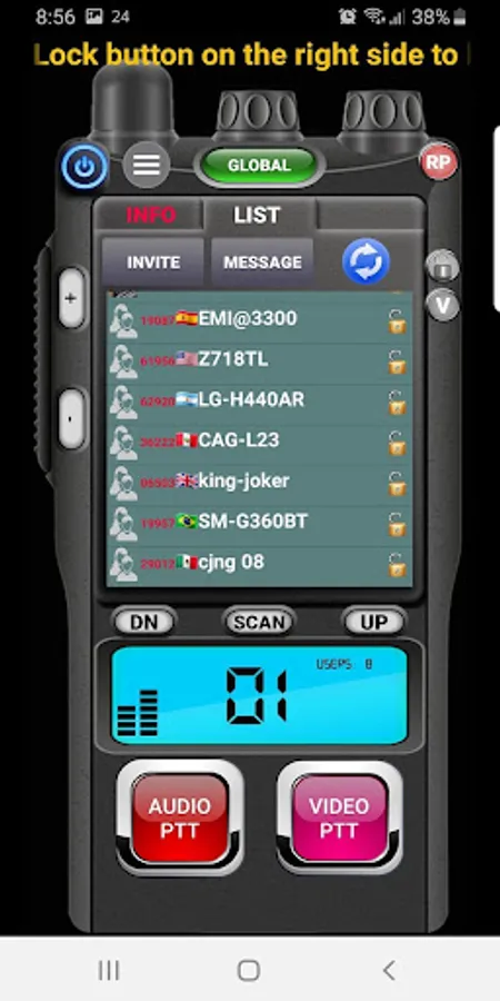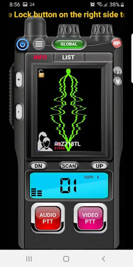 The app has two PTT buttons, one for Audio only and the other one for both Audio and Video.