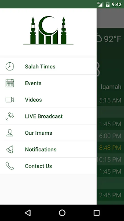 * Watch Videos (Isha Khatira, Jummah Khutbah, etc) uploaded to YouTube from within the App