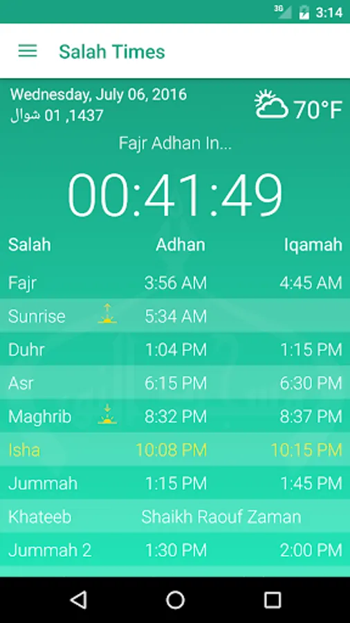 * View current Salah Times - Adhan/Iqamah