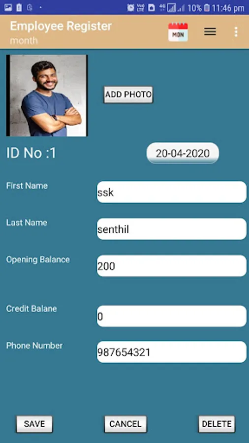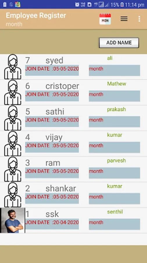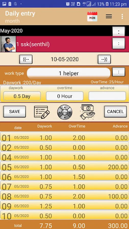 Record your employees daywork ,overtime and advance details very easy day by day.
