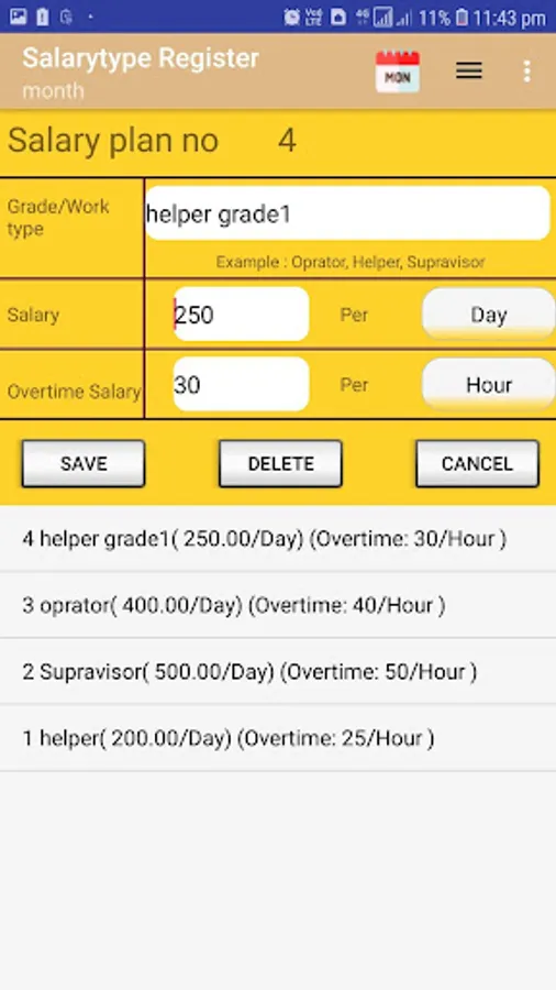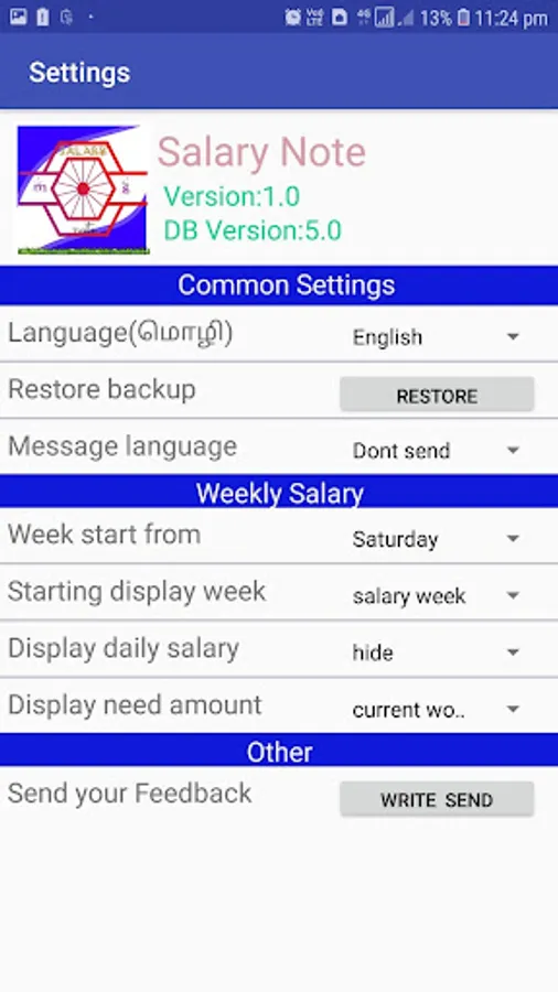 Salary Note:With this app you can manage three types(Monthly,Weekly,Piece work or Part work)