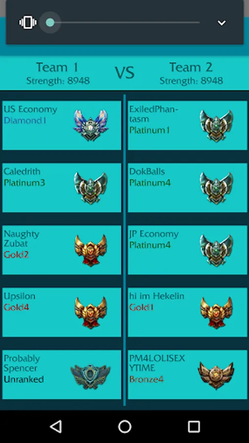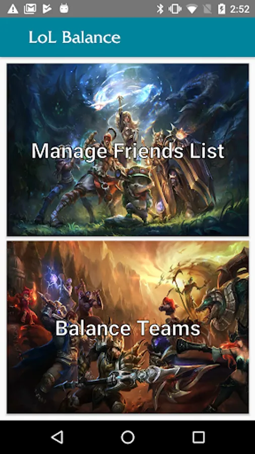 LoL Balance is a tool used to balance your team of friends in custom games. With a bulit-in MMR rating system, the app will quickly find the most balanced teams possible! LoL Balance includes a Friends List so you can quickly swap players in and out on the fly. Balanced teams make for fair games, and most importantly make for fun games.