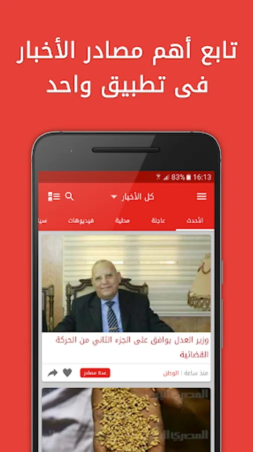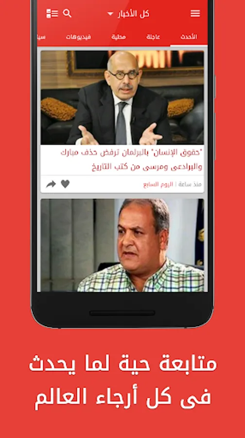 أخبار مصر هو أول تطبيق كامل يقوم بجلب أخبار موقع المصرى اليوم و موقع الوطن و موقع اليوم السابع و بوابة الأهرام و الوفد و الأخبار على أندرويد حيث يتيح لك متابعة الأخبار من مصر و الوطن العربى و كل ما يجرى أول بأول من هاتفك بسهولة و بساطة فى العرض.