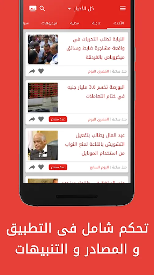 * إمكانية إختيار مصارد الأخبار