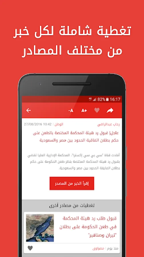 -يمكنك الإحتفاظ بالأخبار المميزة التى تختارها على هاتفك و قراءتها أو الرجوع إليها فى أى وقت بدون إنترنت.
